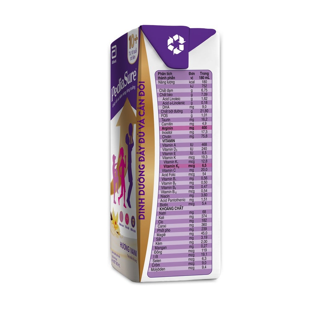 (*) So với các sản phẩm PediaSure có bổ sung Vitamin K2 tự nhiên và Arginin cho trẻ 1-10 tuổi.