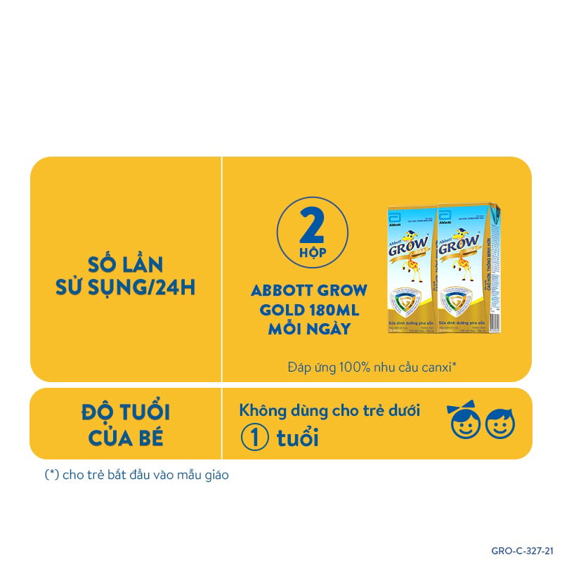 Sữa nước Abbott Grow Gold Hương Vani 180ml là thức uống dinh dưỡng dành cho bé từ 1 tuổi trở lên. Sản phẩm cung cấp nguồn dinh dưỡng hỗ trợ bé phát triển chiều cao, trí não cũng như tăng cường sức đề kháng.