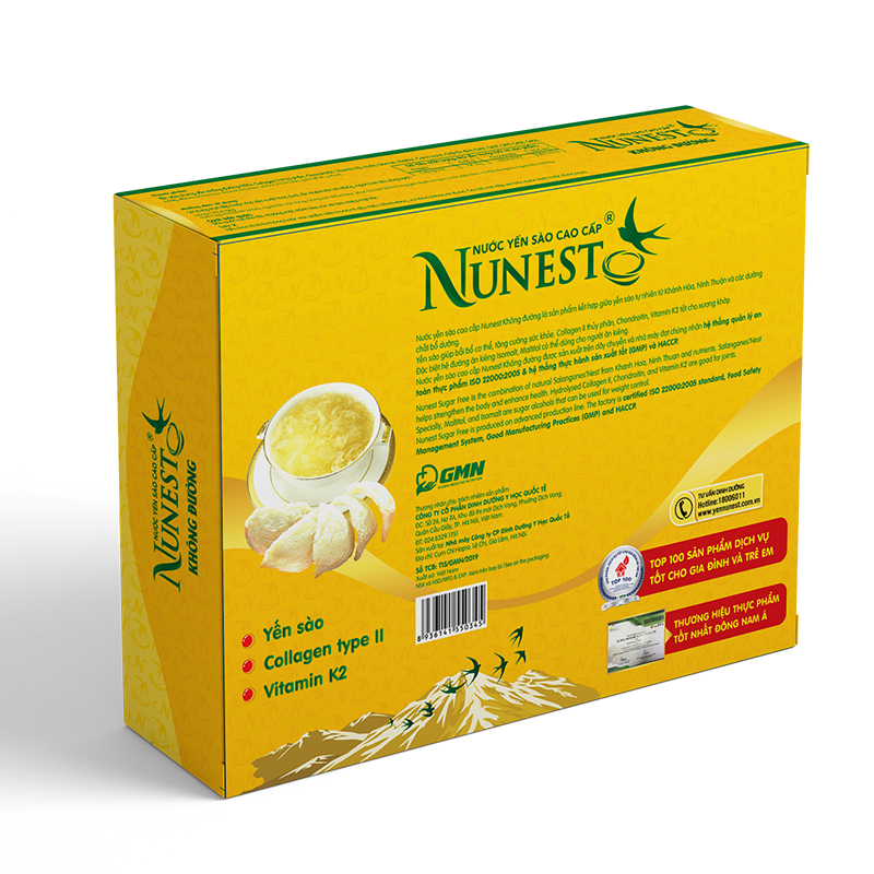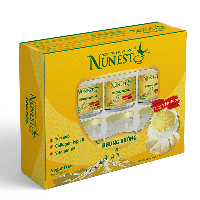 - Nước yến sào Nunest Không Đường 70ml: Sự kết hợp giữa yến sào tự nhiên, collagen type II, chondroitin, vitamin K2 giúp bồi bổ và tăng cường sức khỏe, phù hợp cho người đái tháo đường hoặc ăn kiêng.