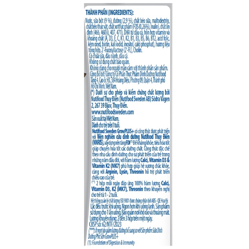 Sữa dinh dưỡng Nutifood GrowPLUS+ Bạc pha sẵn 180ml (trên 1 tuổi)