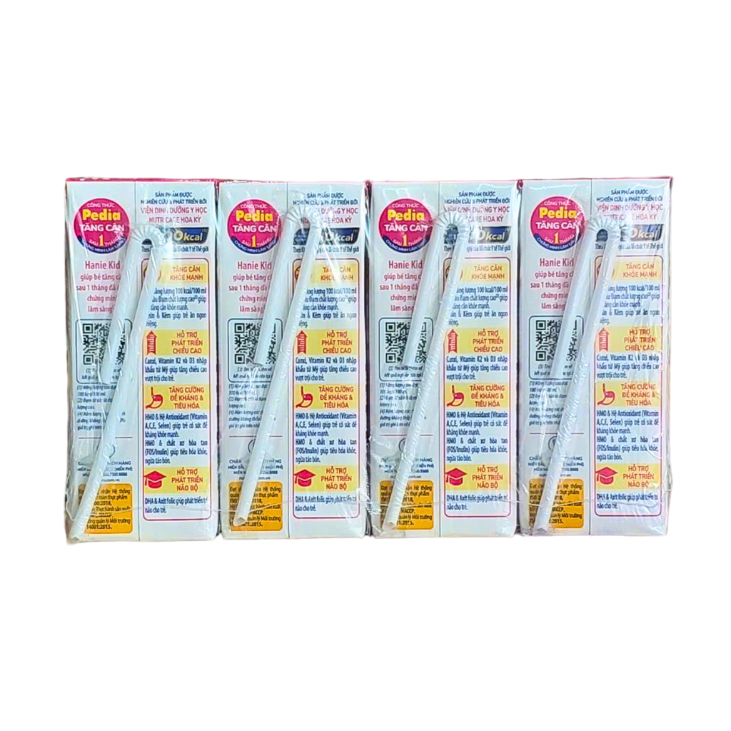 - Sữa Hanie Kid là sản phẩm chuyên biệt dành cho trẻ nhẹ cân, thấp còi với công thức Pedia cao năng lượng 100 kcal/100 ml, đáp ứng tiêu chuẩn khuyến nghị của Tổ chức Y tế Thế giới. Với nguồn đạm sữa chất lượng cao và các dưỡng chất như HMO, FOS, sữa Hanie Kid hỗ trợ tiêu hóa và hấp thu tốt, giúp bé tăng trưởng khỏe mạnh mà không lo nóng hoặc táo bón.
