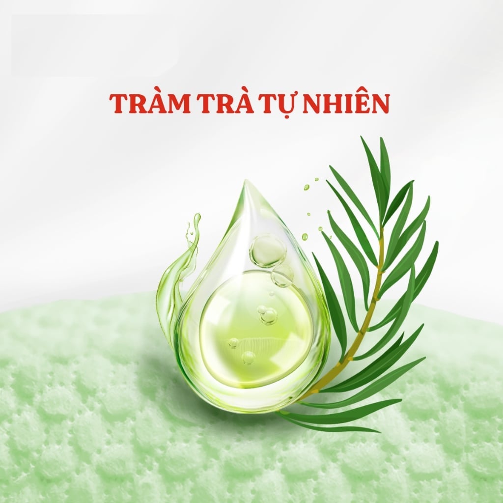 1. Tinh chất TRÀM TRÀ TỰ NHIÊN trên bề mặt tã giúp hạn chế vi khuẩn, làm dịu và chữa lành da bé.