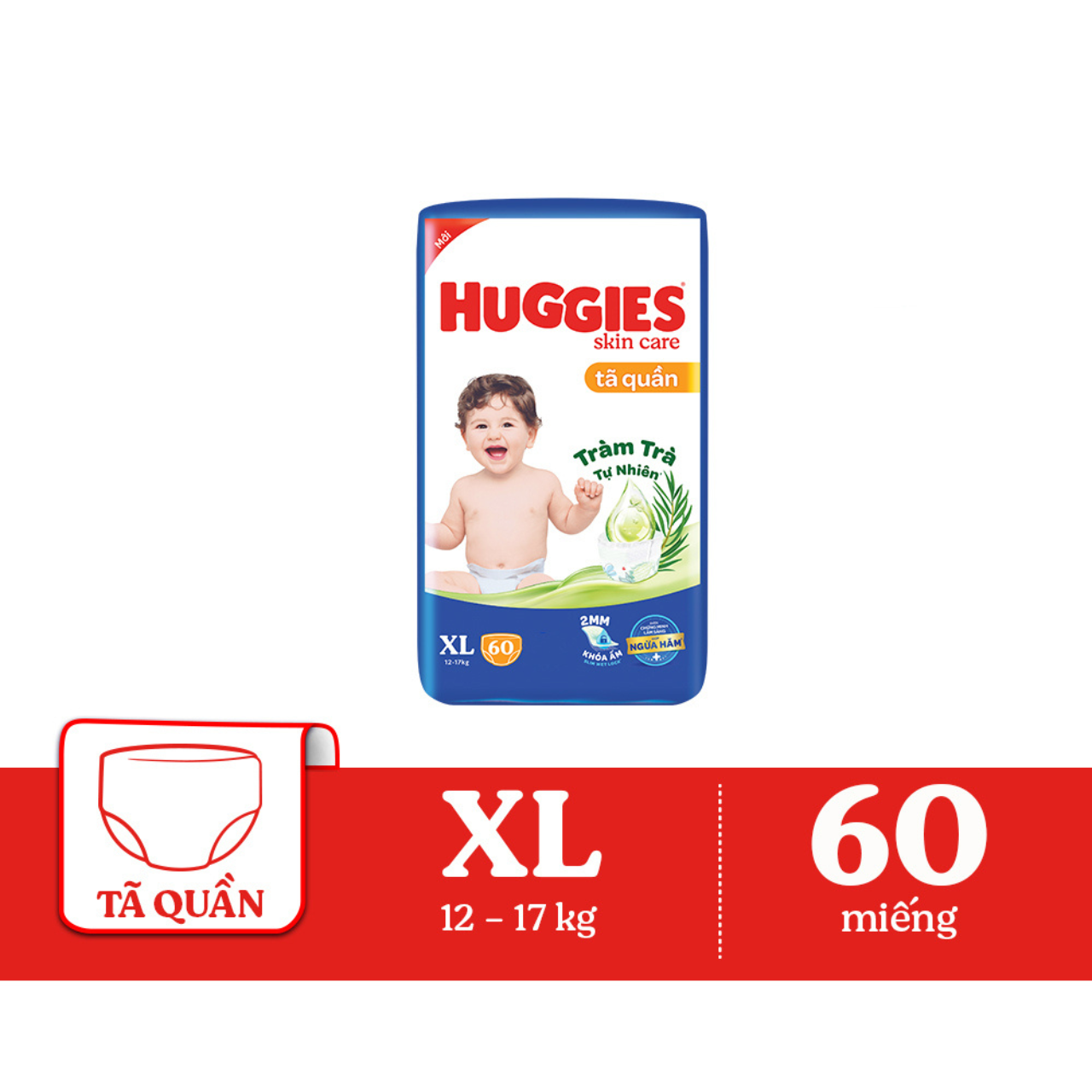 Tã quần Huggies Skincare size XL phù hợp với bé từ 12-17 kg. Sản phẩm bổ sung tinh chất tràm trà tự nhiên, giúp mang đến cảm giác thoải mái, dễ chịu và ngừa hăm tã cho bé. Ưu điểm nổi bật ![]()